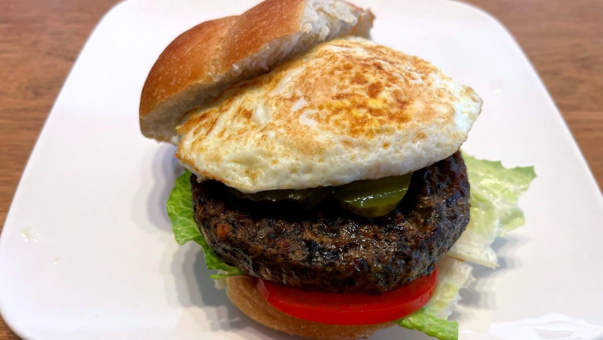 כמו במסעדות: המבורגר בסטייל עם ביצת עין הפוכה – מתאים לצמחונים או למפחיתי בשר. צילום: עינב בורשטיין