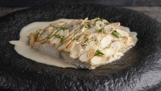 מתכון חגיגי, טעים ומאוזן: פילה לברק עשיר בחלבון ואומגה 3, בטחינה גולמית איכותית וקראסט שקדים מלא טעם וקראנצ' בריא.
