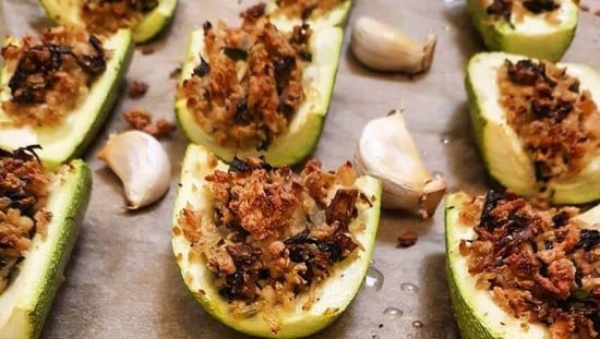 סירות טבעוניות של קישואים במילוי פטריות וטופו